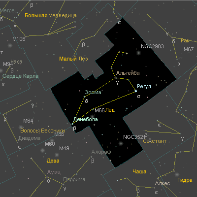 Возле ? Льва имеются спиральные галактики M65 и M66.