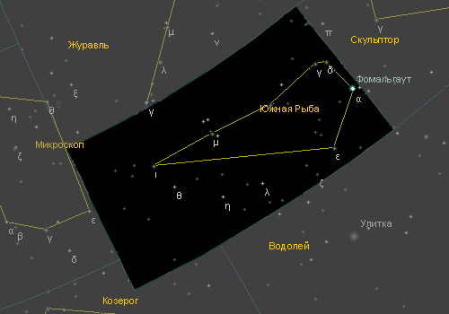 ? Южной Рыбы Фомальгаут является одной из самых ярких на небе. Очертание созвездия напоминает рыбу с длинным хвостом, Фомальгаут расположен в «голове рыбы».